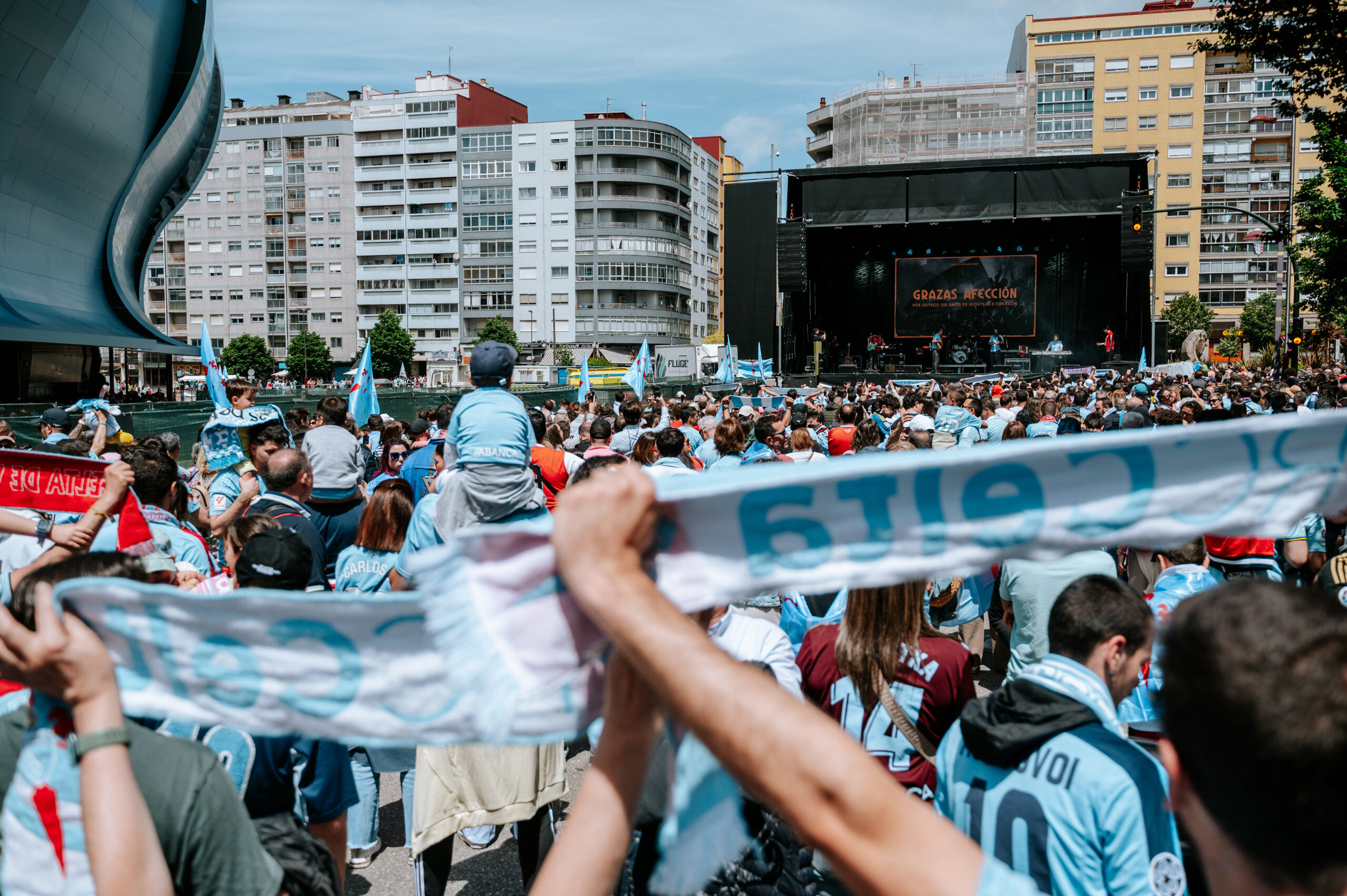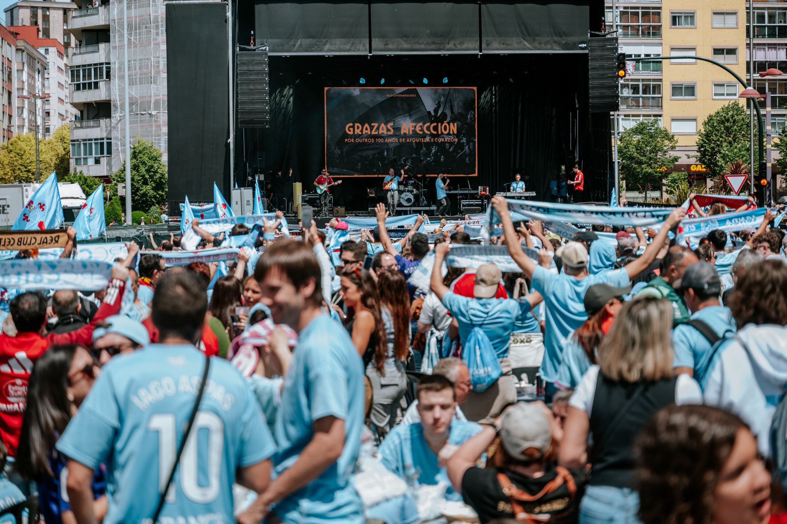 Coincidiendo con el último partido de la temporada, este domingo los aledaños de Abanca Balaídos fueron una auténtica fiesta a lo largo de todo el día. La Fiesta de Fin de Centenario reunió a miles de personas que unidos disfrutaron de una jornada en la que el celtismo fue el principal protagonista.