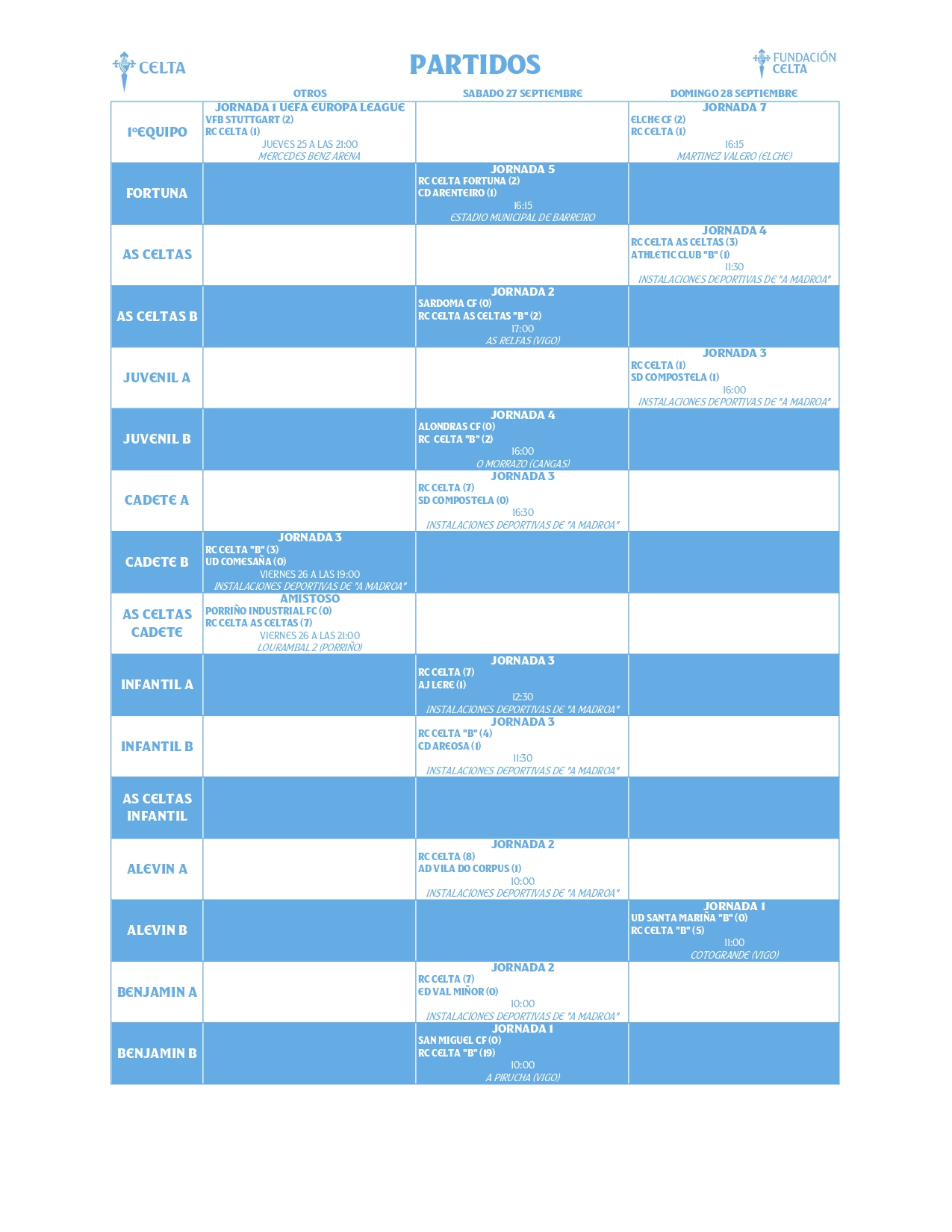 Resultados de A Canteira del Celta (27 y 28 de septiembre)