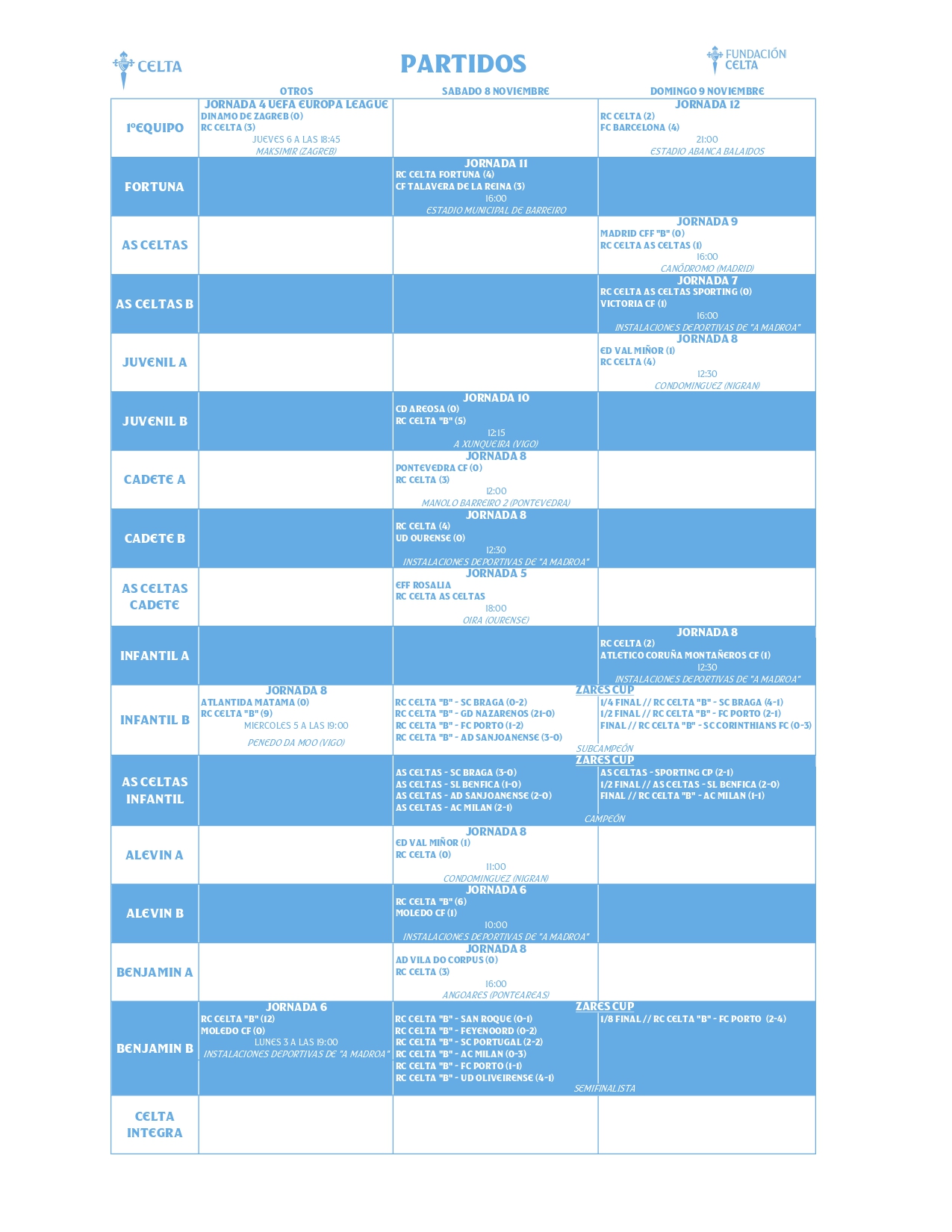 Resultados de A Canteira del Celta (8 y 9 de noviembre)