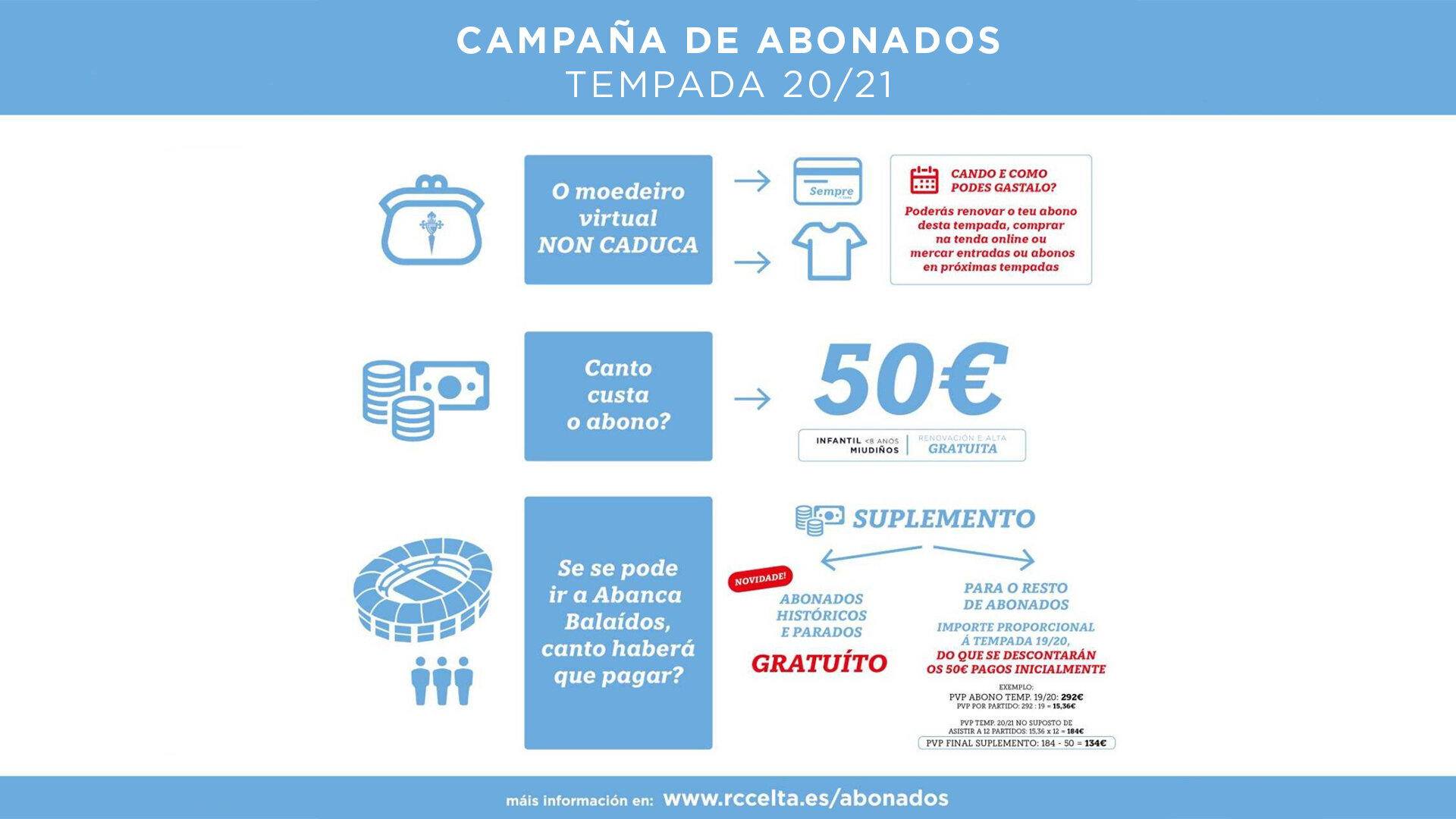 Esta tempada 2023/24 xerou unha enorme ilusión no celtismo, como queda patente co impresionante número de pre reservas rexistrado para novas altas. En menos dunha semana 1900 afeccionados anotáronse na lista de espera habilitada polo club na súa páxina web oficial: https://rccelta.es/gl/abonados/ , na que ademais se poderán atopar e seguir todas as novidades da próxima campaña de abonados.