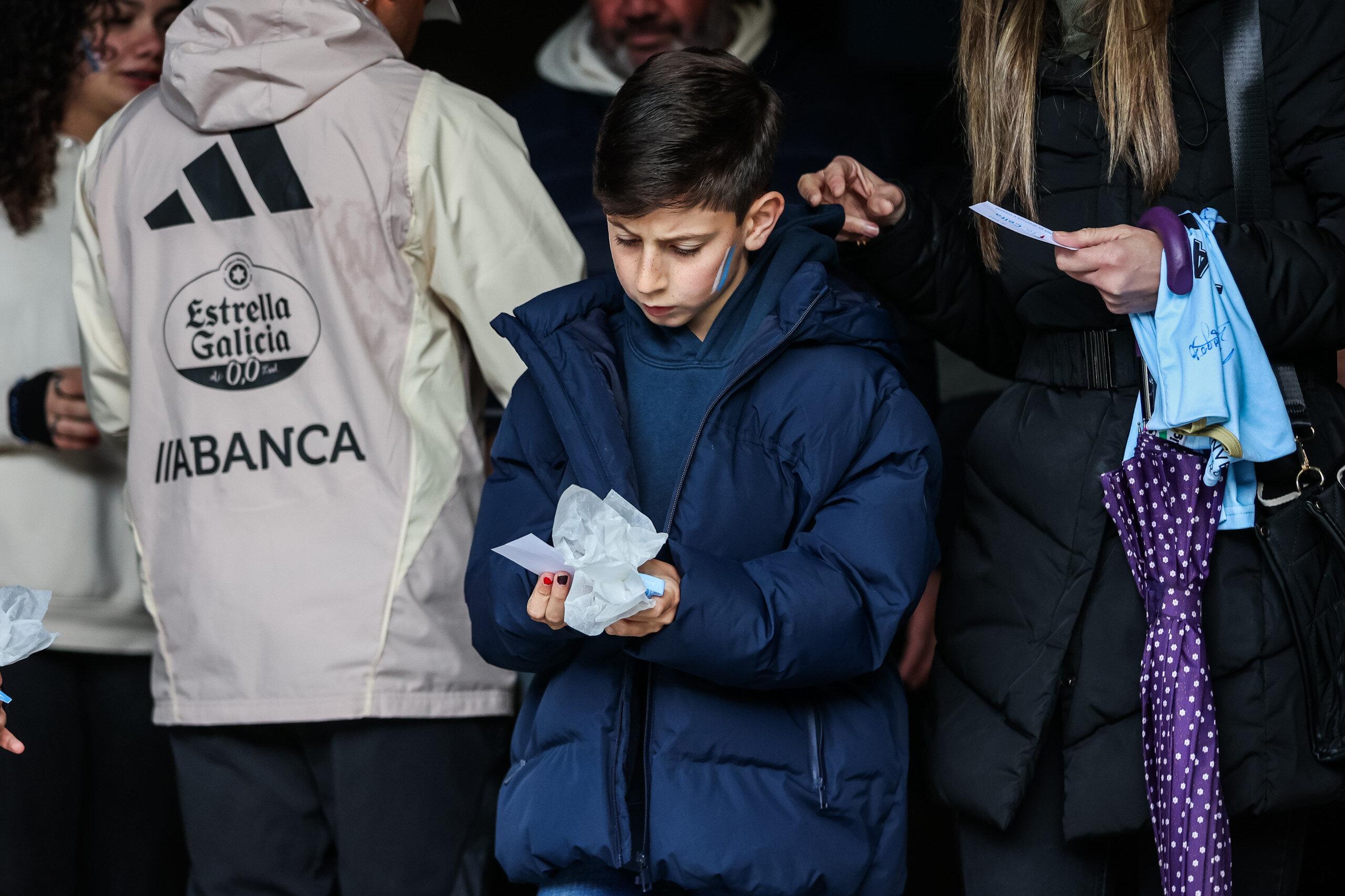 Alegría e ilusión nun festivo no que a forte choiva deu tregua durante as case dúas horas e na que os afeccionados puideron gozar, ademais da sesión preparatoria dos xogadores, da homenaxe a Samuel Comesaña, xogador do Fundación Celta Integra, que anunciou nas últimas semanas a súa retirada do fútbol por lesión.