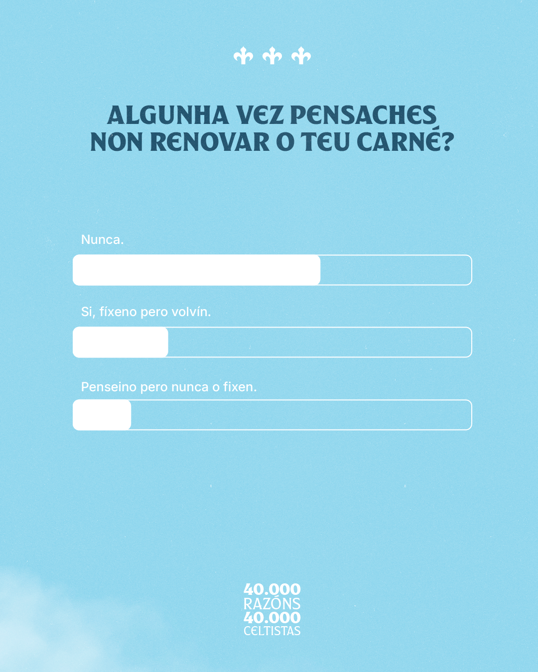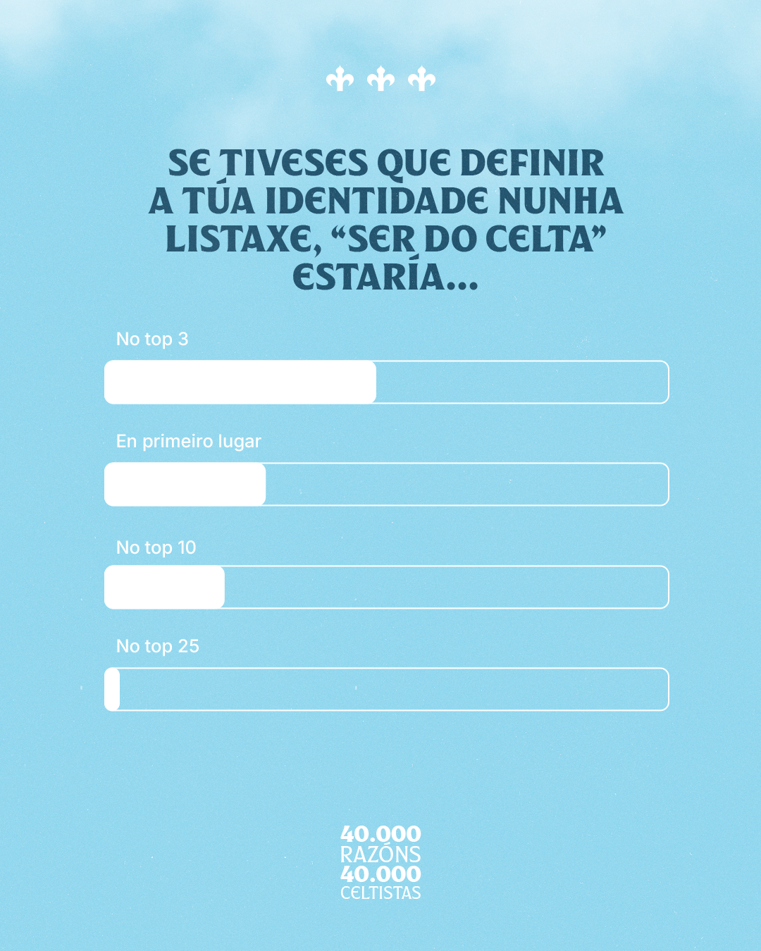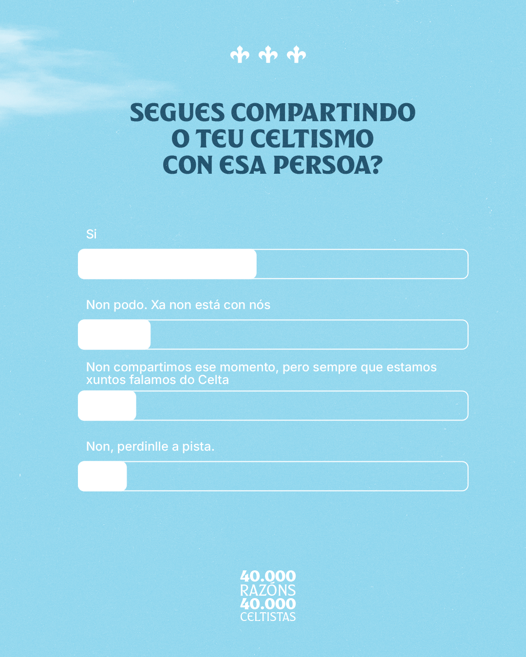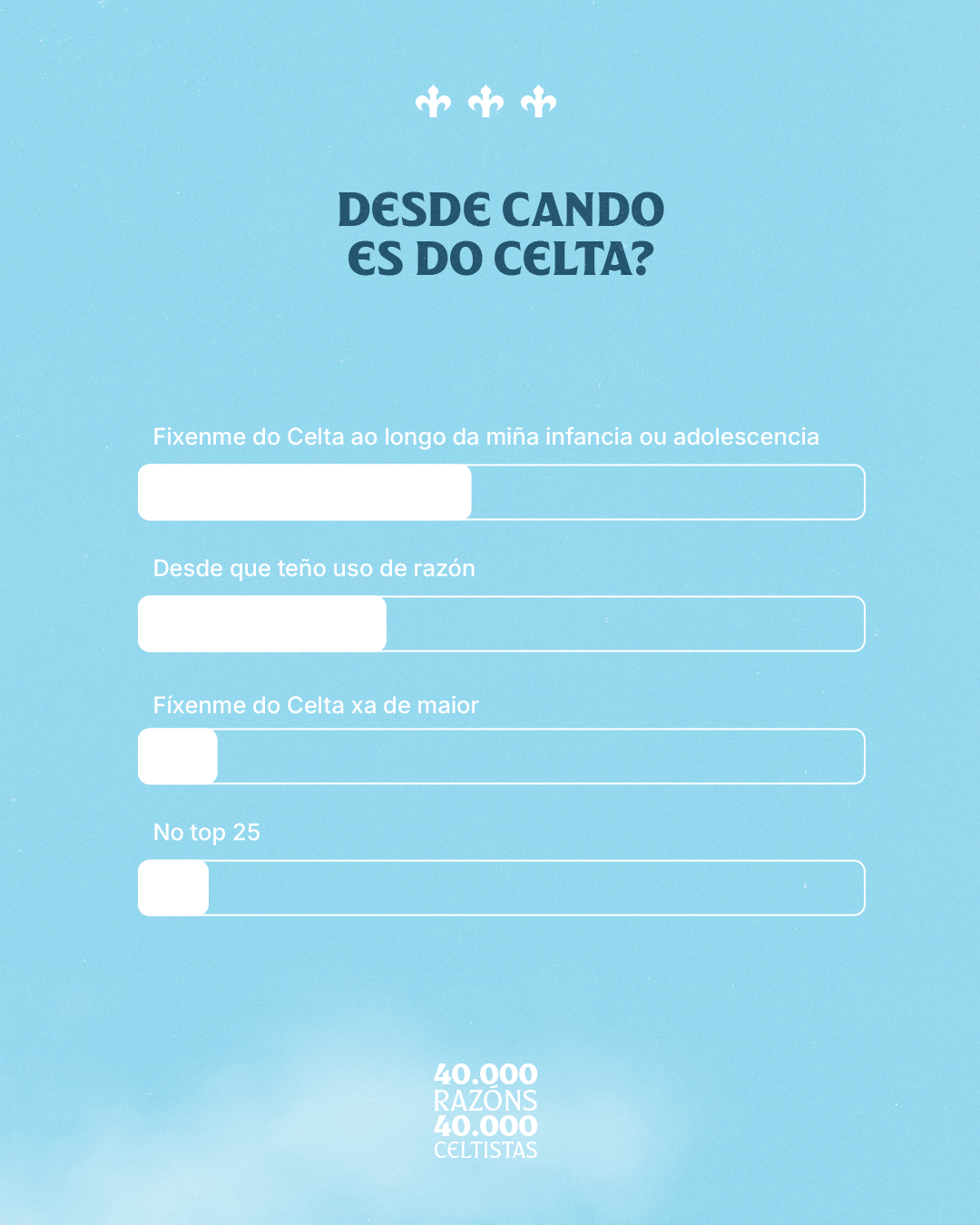 O Celta volve marcar un fito ao superar os 40.000 celtistas, unha cifra que reflicte o crecemento constante deste sentimento que rodea ao club. Para coñecer mellor a quen forma esta gran familia celeste, o Celta lanzou recentemente unha enquisa cuxos resultados, ademais de reveladores, deixaron máis dun sorriso nas oficinas de A Sede.